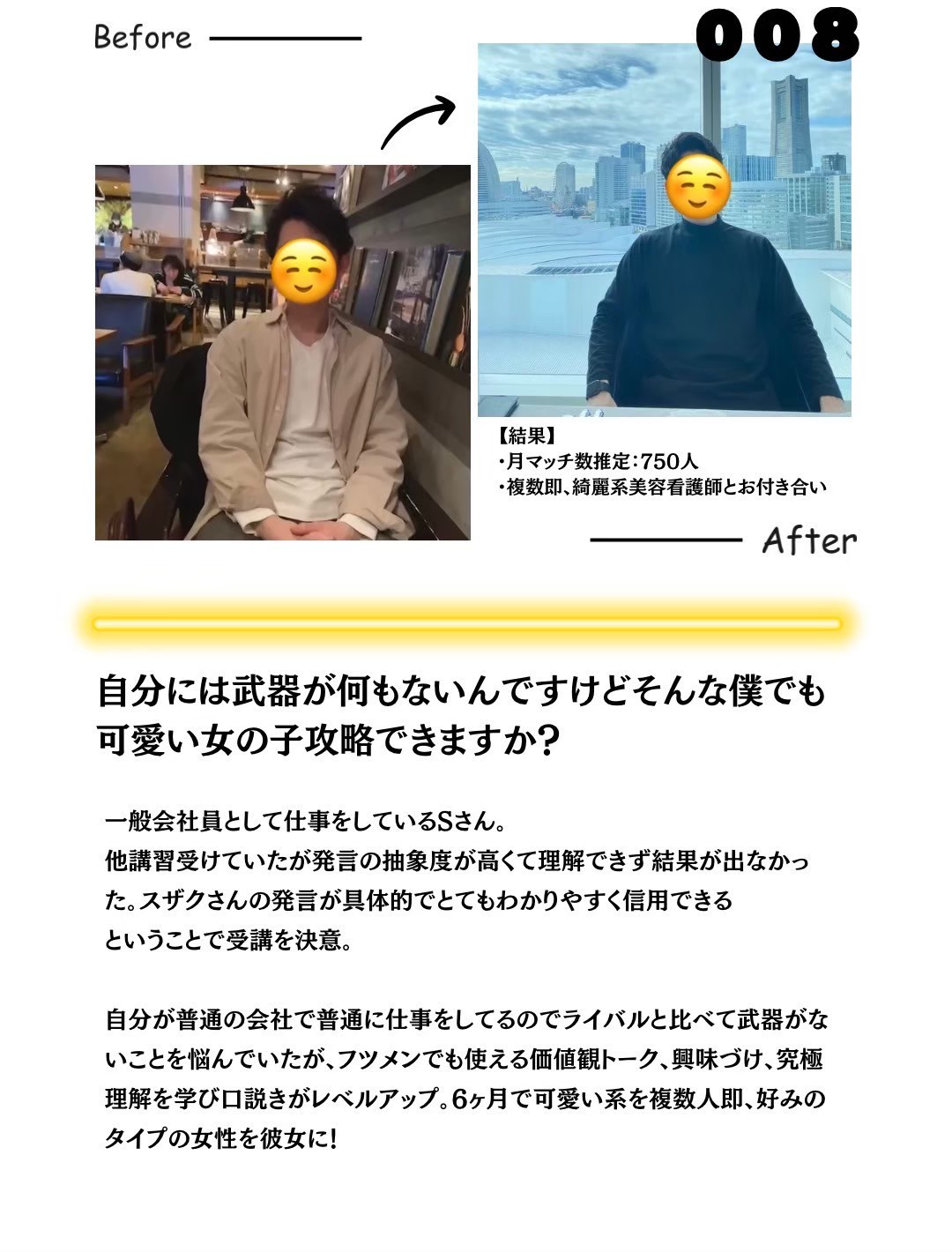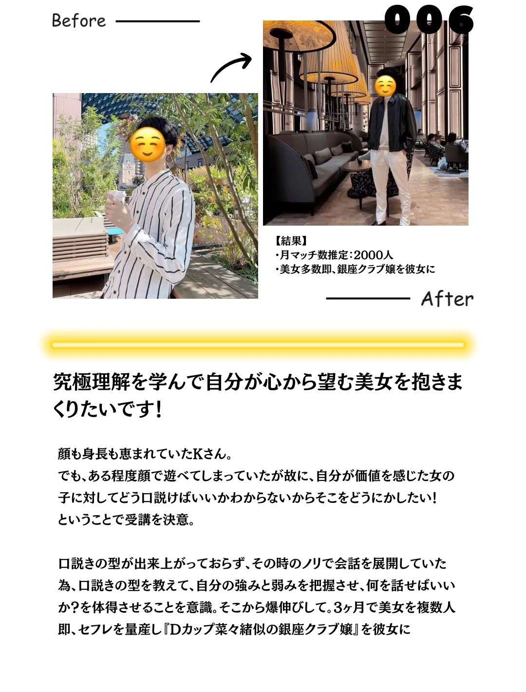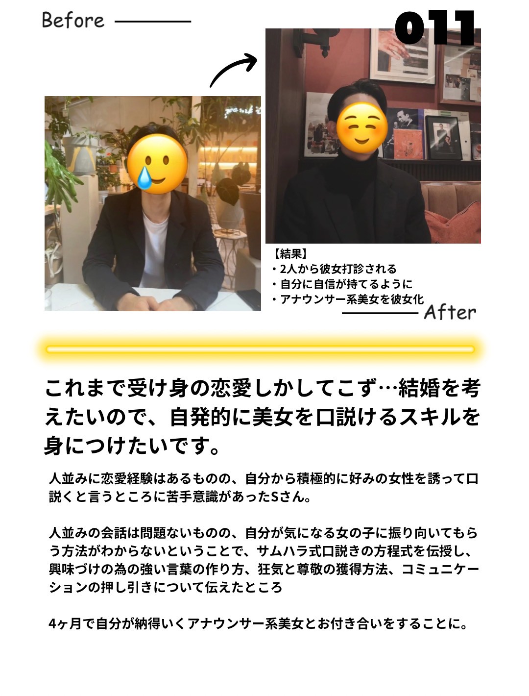 Twitterの発信を見ていて、自分はそれなりに遊んできましたがキープがとても苦手で可愛い子とやれても次回会えませんでした。年齢も年齢なので、綺麗な彼女を作りたいと思ったので参加させてもらいました。
